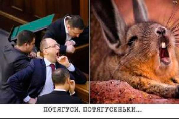 • ИВАН-КОЛЫВАН - по-русски нечто вроде ваньки-встаньки. Так называют людей, несущих службу на блокпостах в Донецкой и Луганской областях. Интерпретация Антимайдана: «Иванами-Колыванами могут быть как представители народного ополчения, так и каратели из национальной гвардии. И тем, и другим сутками стоять на посту тяжело, а надо». ОГЛАВЛЕНИЕ2.3. О ПРОУКРАИНСКИХ ПАРТИЯХ И ПОЛИТИКАХ• ФАШИСТЫ, БАНДЕРОВЦЫ - партия «Свобода» Олега Тягнибока. • БЕЛОЕ БРАТСТВО, ВОИНЬ! СВЕТА (от названий скандально известной запрещенной секты начала 90-х гг. во главе с Марией Дэви Христос, получившей тюремный срок за свою деятельность) - партия «Батькивщина», возглавляемая Юлией Тимошенко. Термин проводит ассоциации с белыми одеждами сектантов и белым цветом как символом партии «Батькивщина», а также между тюремным сроком лидера секты и лидера партии. ЮЛЬК4 И (от имени Юля), ЮЛЫАНЫ (от Юля и фаны «поклонники»), ЮЛЕБОТЫ (от Юля и робот ы) - члены партии «Батькивщина» и ее сторонники. • ПАРТИЯ «УГАР» - партия «Удар» Виталия Кличко. • ТРЫНДИТА (от названия гуцульского народного духового музыкального инструмента трембита и разг. трындетъ «болтать попусту, говорить чепуху») - прозвище Олега Тягнибока, лидера партии «Свобода», намекающее на содержание его выступлений. • ЯЙЦЕНЮК (от яйцо в обсценном значении), ЯЙЦЕНЮХ (от обсценного яйцо и нюхать), ЦУЦЕНЮК (от цуцик, разг. «безродный пёс»), КРОЛИК, КРОЛИК СЕНЯ (от кролик как зверёк) - прозвища Арсения Яценюка, сначала одного из лидеров партии «Батькивщина», затем лидера партии «Народный фронт» и Премьер-Министра Украины, КУЛЯВЛОБ / КУЛЕЙВЛОБ (от укр. куля в лоб «пуля в лоб») - прозвище Яценюка, отсылающее к сказанному им в разгар противостояния на Майдане: «Я с позором жить не буду. Завтра пойдем вместе вперед. Если пуля в лоб, то пуля в лоб. Но честно, ![]() • БОКСЕР, УДАРЕННЬІЙ (от партия «Удар»), ВЕЛИКИЙ ТУПОЙ (ср. Великий немой как название немого кино) - прозвища Виталия Кличко, отсылающие к его спортивной карьере боксера и намекающие на травму головы. ВОГНЕГАСНИК - прозвище Виталия Кличко во время Майдана, полученное им в противостоянии на улице Грушевского. Кличко пытался остановить открытые столкновения между силовиками и активистами. Политик призывал активистов вернуться на Майдан и продолжить протест в менее активных формах. Слова Кличко не были восприняты протестующими, которые облили его пеной из огнетушителя. ГАУЛЯЙТЕР КИЕВА - прозвище Виталия Кличко как мэра Киева. Отсылает к его тесным контактам с Германией, установленным во время его спортивной карьеры. ОДИН ЖЕТОН - прозвище Виталия Кличко, связанное с его неумением четко формулировать свои мысли, что стало поводом для активного троллинга боксера-политика в соцсетях. Одной из самых удачных шуток на тему «Кличко сказал, Кличко не подумал» стала фраза про один жетон: «Проезд в метро дорожать не будет - как стоил один жетон, так и будет стоить». В этом плане синомичным прозвищем Кличко является УКРАИНСКАЯ ИСАКИ (сравнение со спикером Госдепартамена США Дженнифер Исаки, которой случалось попадать впросак из-за своих неудачных высказываний). ![]() • ТРИТУШКИ (от три тушки или три титушки), ТРЕХГОЛОВАЯ ОППОЗИЦИЯ (ср. трехголовый дракон) - ироническое собирательное название лидеров парламентской оппозиции Виталия Кличко, Олега Тягнибока и Арсения Яценюка. Получило ра